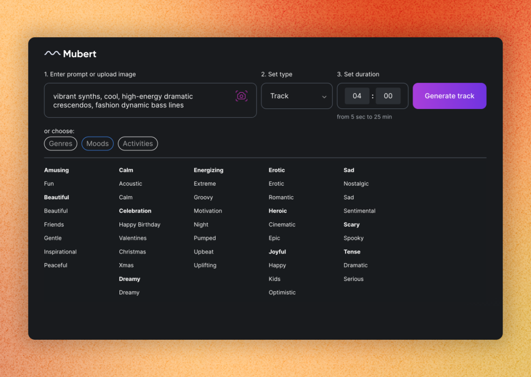 相对于有独立欣赏价值的音乐,功能型音乐(Functional Music)的创作目的不是为了艺术表达,而是为服务于某种功能和效果。它一般有这些特点:无人声,不吸引听众注意,旋律简单重复,相对模式化。AI生成的音乐目前在艺术性和独特性方面存在限制,功能型音乐的这些特点,刚好弱化了技术在这些方面的不足。