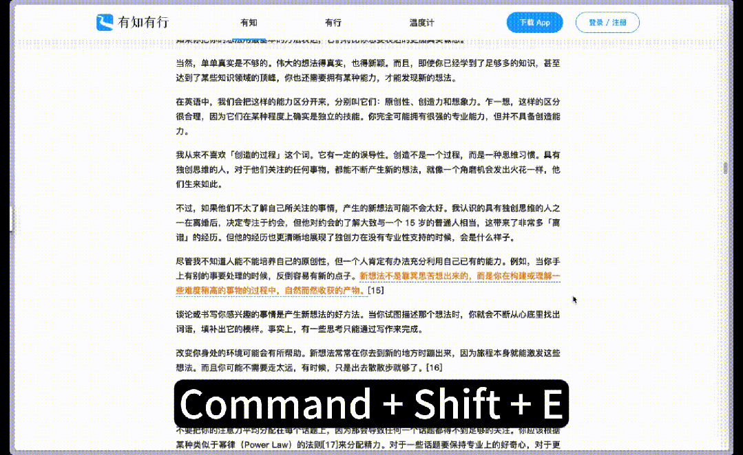 过去我浏览网页时看到有共鸣的一句话,有意思的产品细节,就会截图保存在桌面上,但如果长期不整理回溯,这些截图很容易就被遗忘了。Eagle洞察到了这一细节场景,提供了网页截屏功能,既可以截取任意大小的画面,也可以选择整个网页进行保存。使用快捷键Command + Shift + E截图后,相关内容会自动保存到Eagle。批量保存