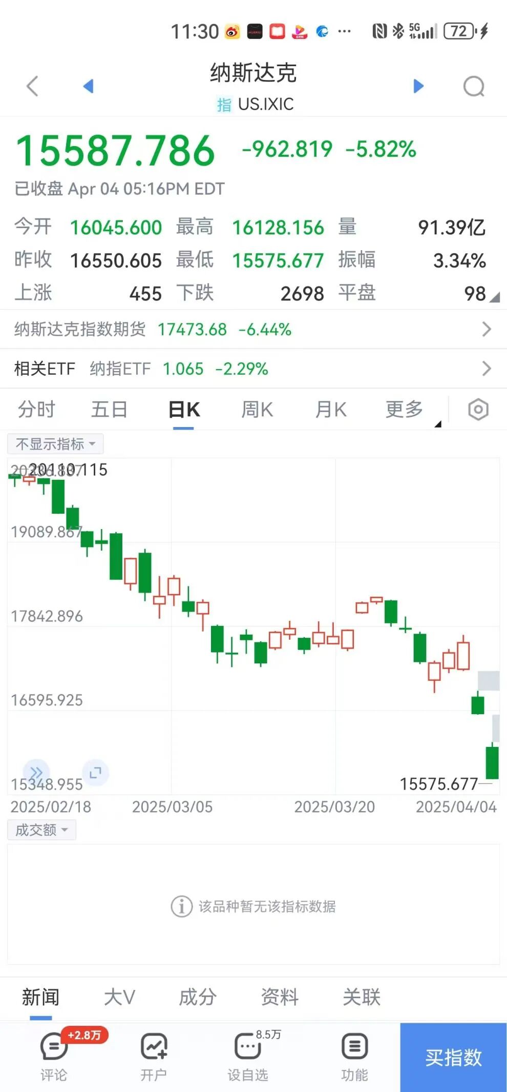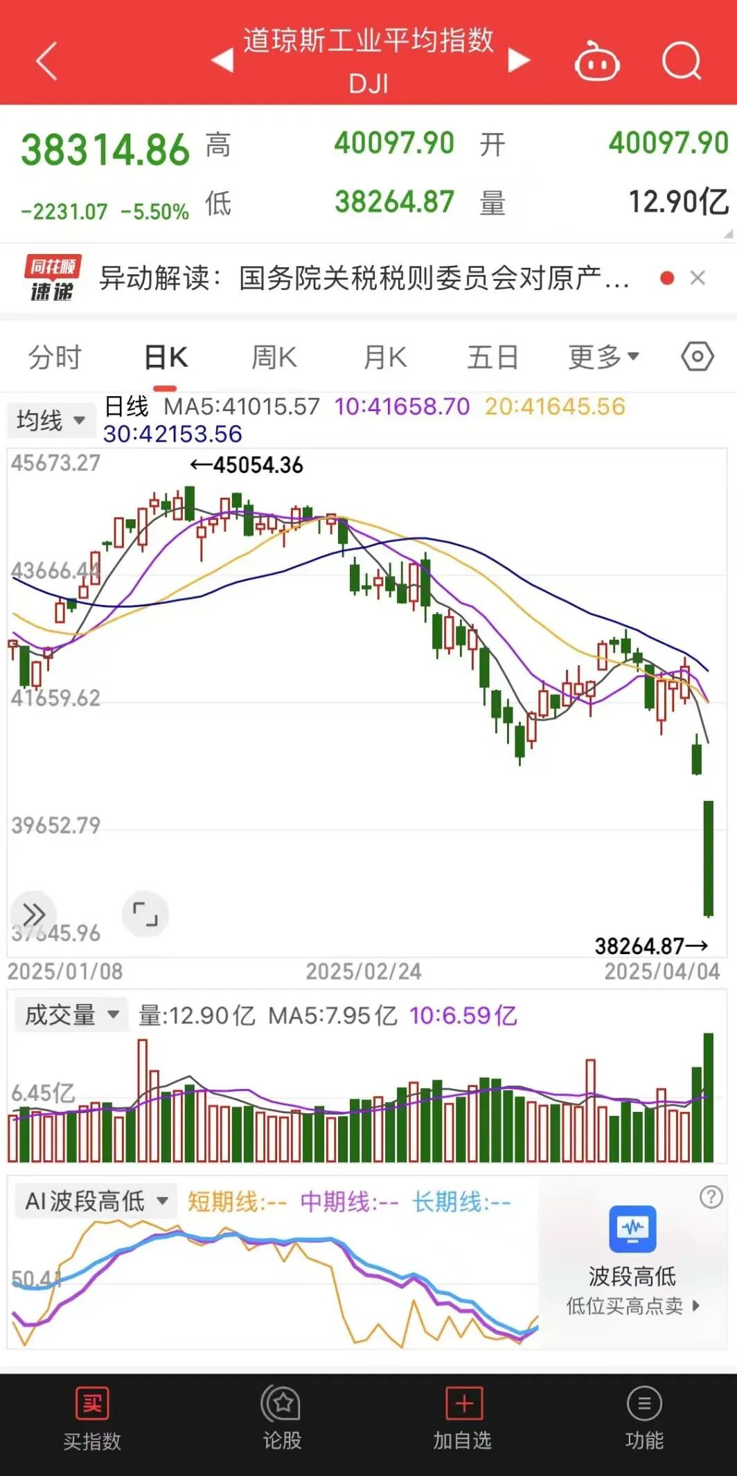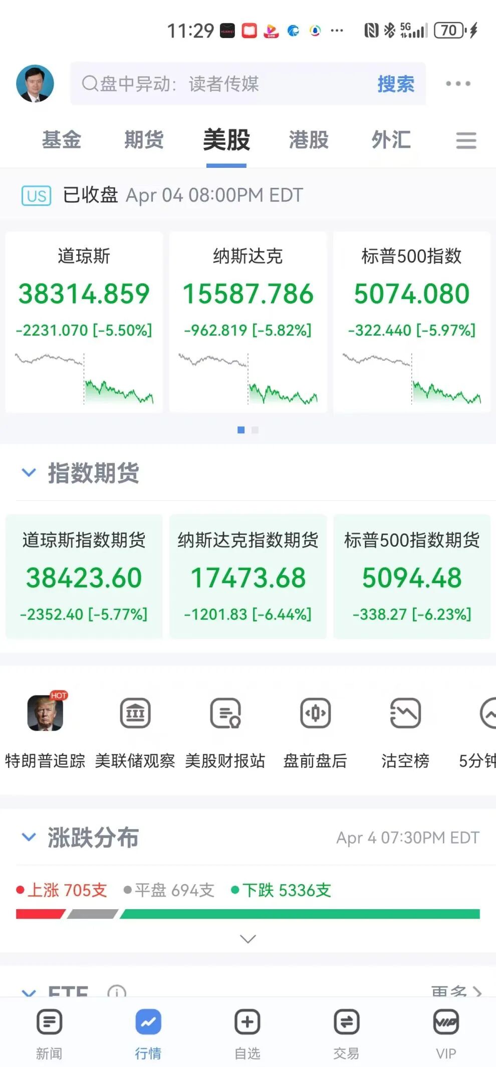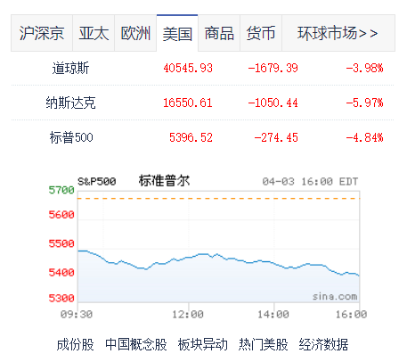 第二天的4月4日股市又暴跌,并且跌幅都超过了5.5%。