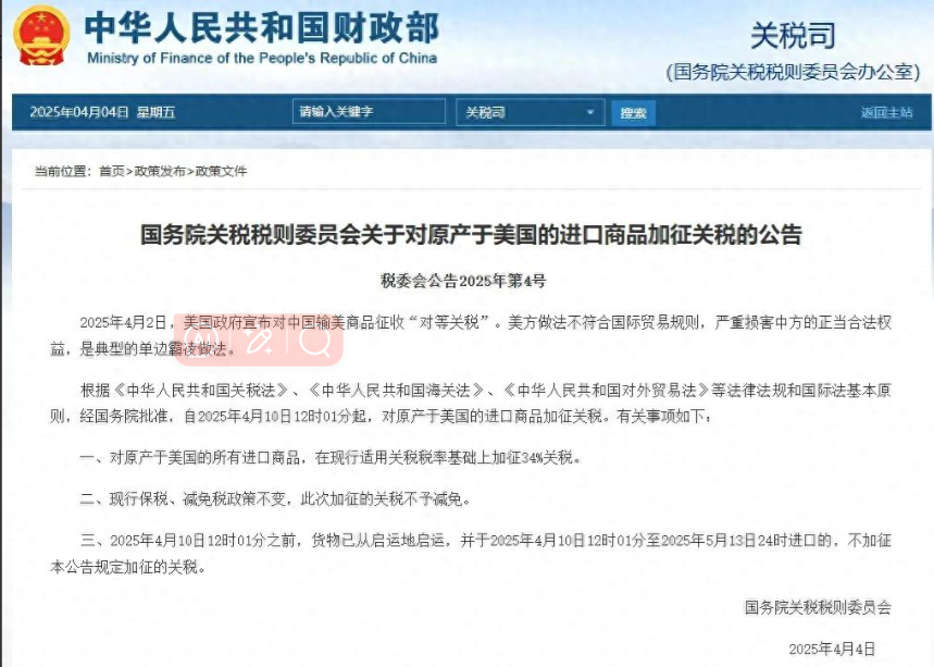 - 直接对美国同样加税34%。宣布将16家美国实体列入出口管制管控名单。将11家美国企业列入不可靠实体名单。对中重稀土相关物项实施出口管制。也就是卡住美国本土高科技产业的脖子。中方在世贸组织起诉美“对等关税”。对原产于美国、印度的进口相关医用CT球管发起反倾销立案调查。暂停6家美国企业输华资质——还玩什么关税,直接把出口中国的美国企业管道封死拉倒。对进口医用 CT 球管发起产业竞争力调查。对杜邦中国集团有限公司开展反垄断调查。加强舆论宣传和国际沟通展现坚定立场和态度,为其他国家树立榜样,鼓励国际社会共同抵制美国的不合理行为。意识就是:别怕,跟他干,我给你顶着。所以,绝大多数国家现在磨拳擦掌,天下苦美久亦,终于可以出一口恶气了。