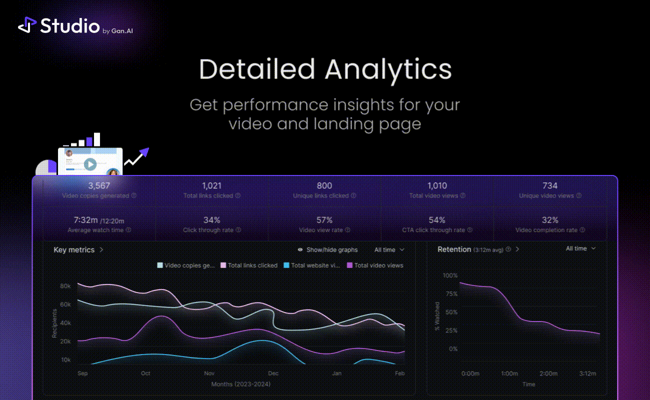 Studio by Gan.AI makes it easy to create and share high-quality, personalized videos at scale. Record unlimited videos, personalise subtitles, backgrounds, thumbnails and share them instantly on AI-built, personalised landing pages that feature your branding.