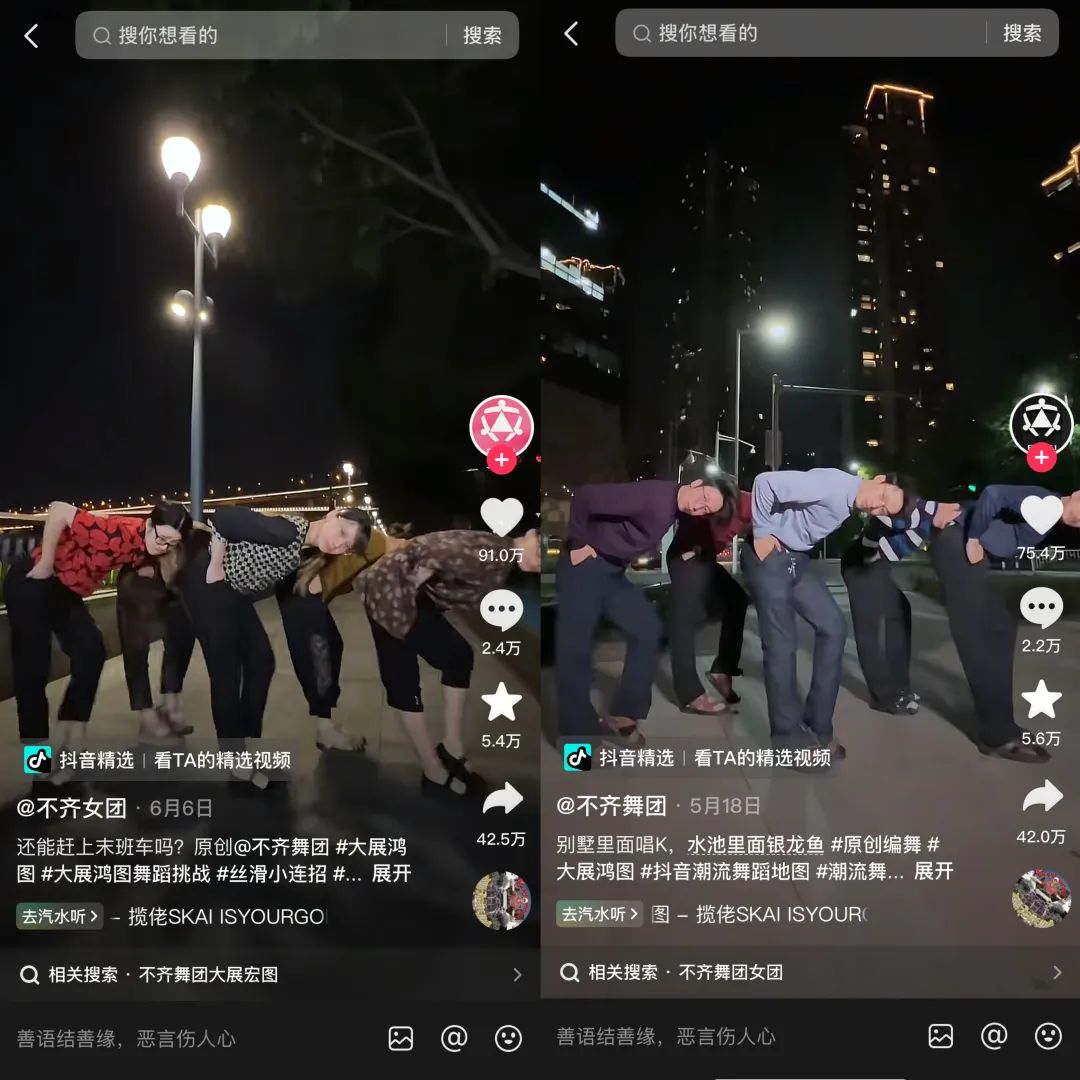 线上,不少明星达人都纷纷在翻录《大展鸿图》的舞蹈;而在线下,亲戚朋友们聚会也要露一手玩一段,大家争相学习揽佬的嚼字、学习揽佬在MV里的手势,好不热闹。可见,《大展鸿图》不仅是线上的爆款,也是线下聚会的氛围王,正在全方位渗透人们的娱乐生活。