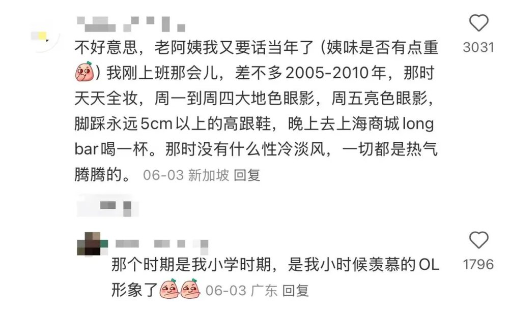 “因为千禧年代的时尚,主打的就是要秀出自己的曲线,张扬自己的魅力。大卷发、红嘴唇和小短裙,任凭哪一样出现在如今的职场里,都会被同事怀疑你是不是活儿太少了,人太闲了。”