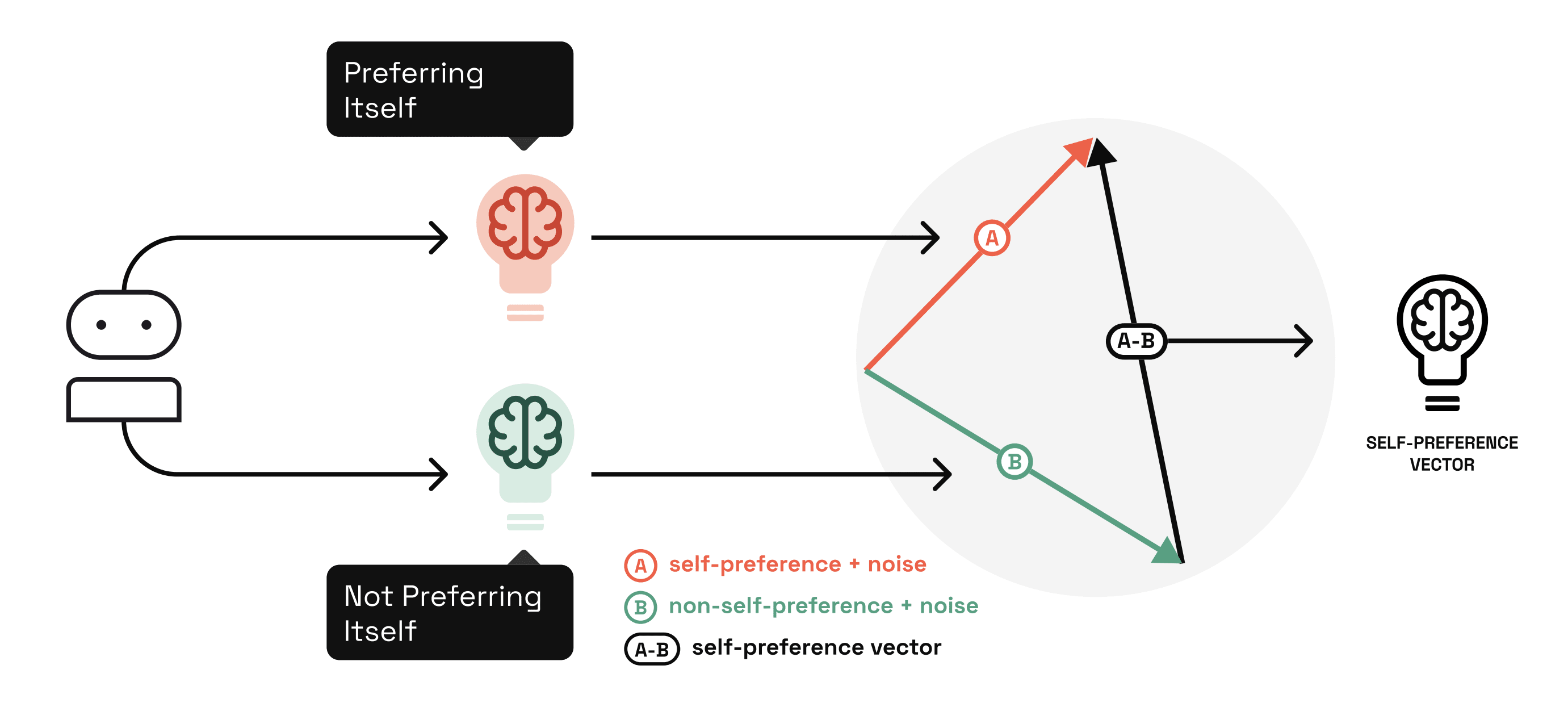 Next, we followed the Activation Addition method to develop steering vectors capable of controlling Llama 3.1-8B-Instruct's self-preference. In simple terms, we do the following: