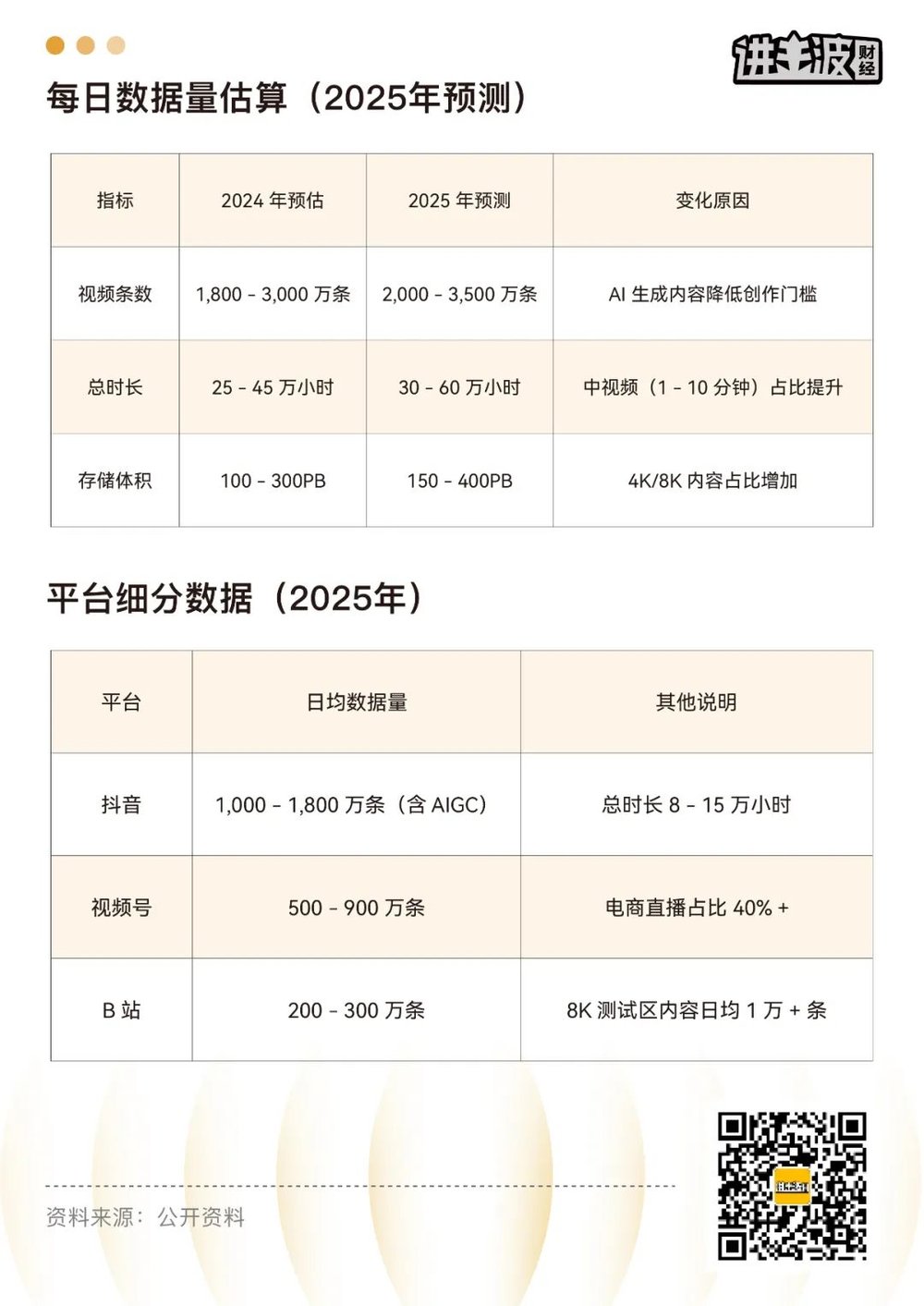 所有人都说现在是视频时代,但每天到底有多少视频呢?通过AI多种比对,大致今年中文互联网上一天2000万~3500万条视频,其中抖音1000万~1800万条,视频号500万~900万条,B站200万~300万条。
