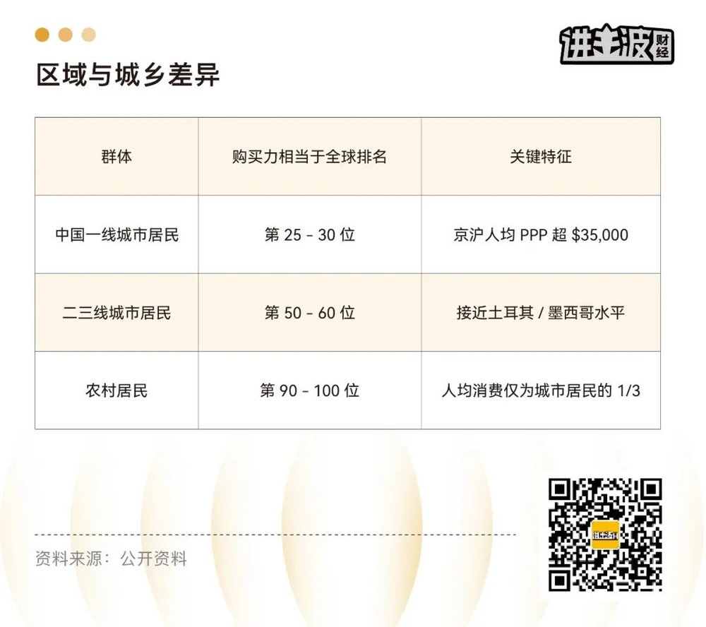 但注意,中国市场分层,一算平均,大家会觉得偏离自身真实状况。所以我们还列了城乡差异下的国际排名,都来自瑞士信贷数据。