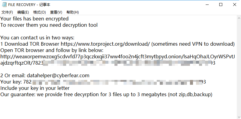 在完成文件加密后,Weaxor勒索软件会在所有受感染目录中植入名为FILE RECOVERY.txt的勒索信,向受害者索要相当于8000至14000元人民币的虚拟货币赎金,且第三方数据恢复商常在此价格基础上加收手续费。
