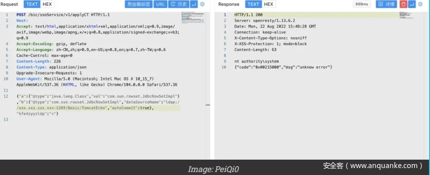 /bic/ssoService/v1/applyCT接口;服务端反序列化后,连接攻击者控制的 LDAP 服务器;