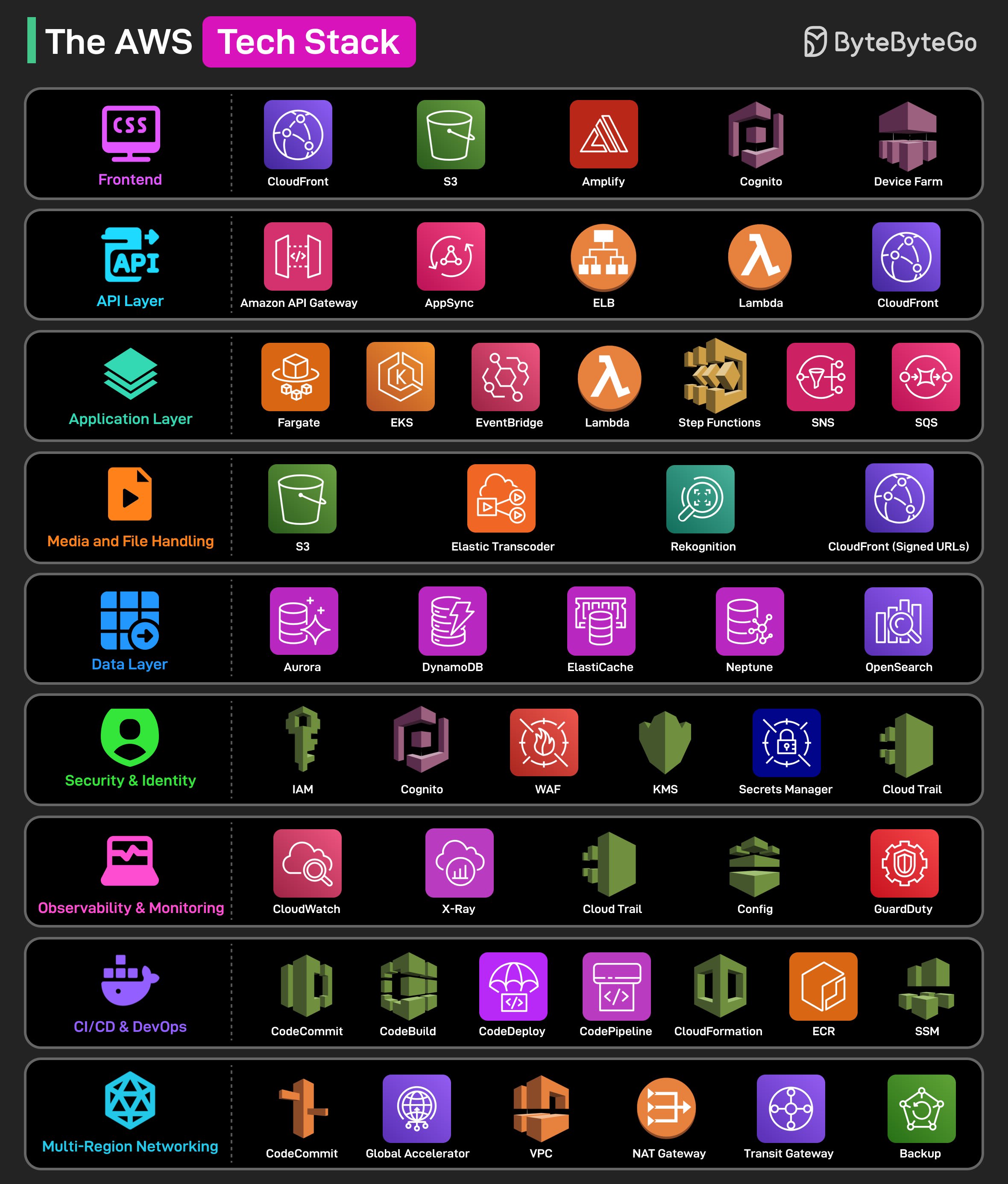This layer hosts business logic. Some services that are important in this layer are Fargate, EKS, Lambda, EventBridge, Step Functions, SNS, and SQS.