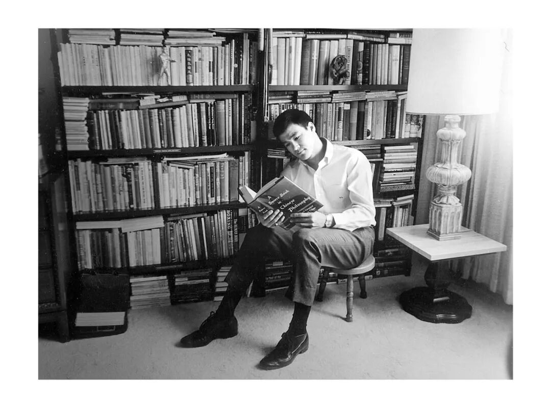 如果去看李小龙读书期间的几张合影,他坐在一堆人里面,戴着一个眼镜,斯斯文文的。他在1959年到1967年这段时间,拿着一本书,还有点学者范儿,喜欢哲学、诗歌、戏剧。但是他又看武术,看搏斗。