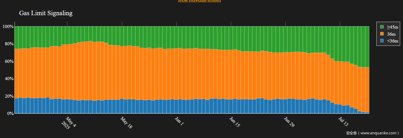 目前,根据GasLimits.pics的数据,47.2%的质押验证者支持提高Gas限额。