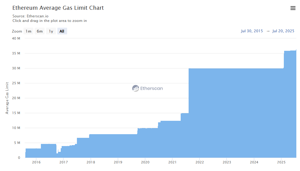 此次Gas限额的增加是自2月以来的首次显著提升,当时Gas限额从3000万个单位提高至3600万个单位。