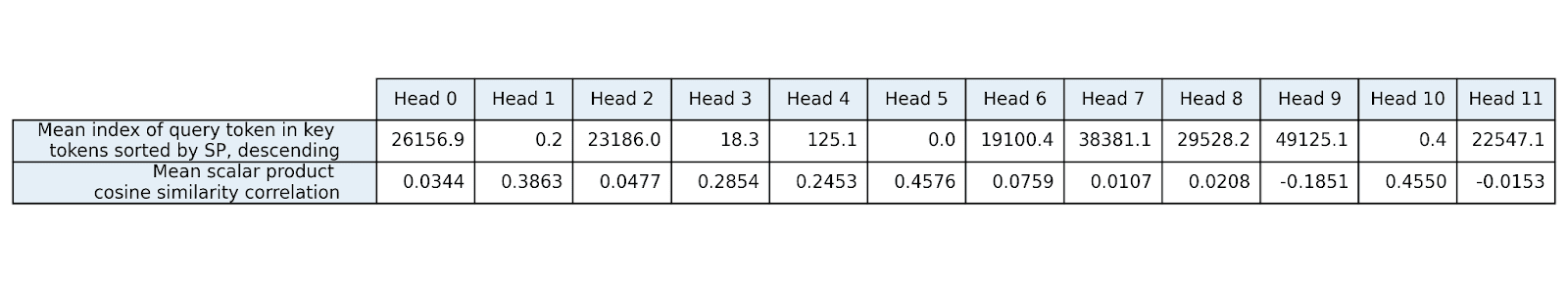 Especially heads with complex semantic calculations going on (0, 2, 8 and 11) will both have average-affecting side effects to be cancelled and not have large general preferences since what they’re looking for strongly depends on the query token.