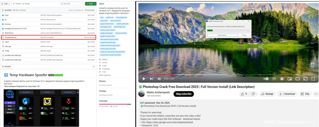 3. GitHub平台滥用:创建包含AI生成内容的代码仓库,以”游戏辅助工具”为名分发”TempSpoofer.exe”等恶意载荷