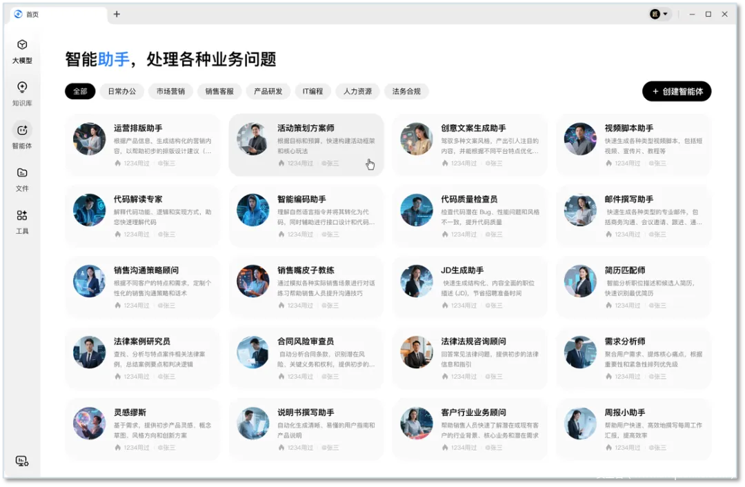基于通用知识库和专业知识库,企业可以搭建各类面向不同场景与业务的知识员工等应用,通过智能问答的方式,解决企业内部管理中员工的信息获取成本高/效率低下的问题。