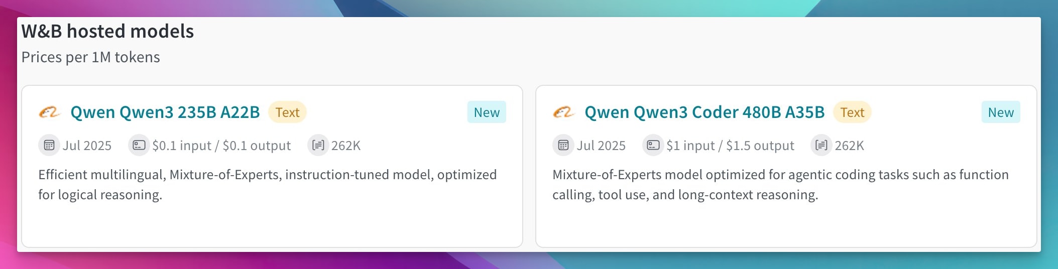 Day 0 support for both new Qwen models on W&B Inference (Try it, Colab). Reply to our tweet with "coding capybara ThursdAI" for credits!