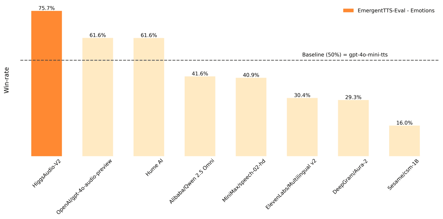 Boson AI open-sources Higgs Audio v2, a unified TTS model that beats GPT-4o-mini and ElevenLabs (X, HF Model).