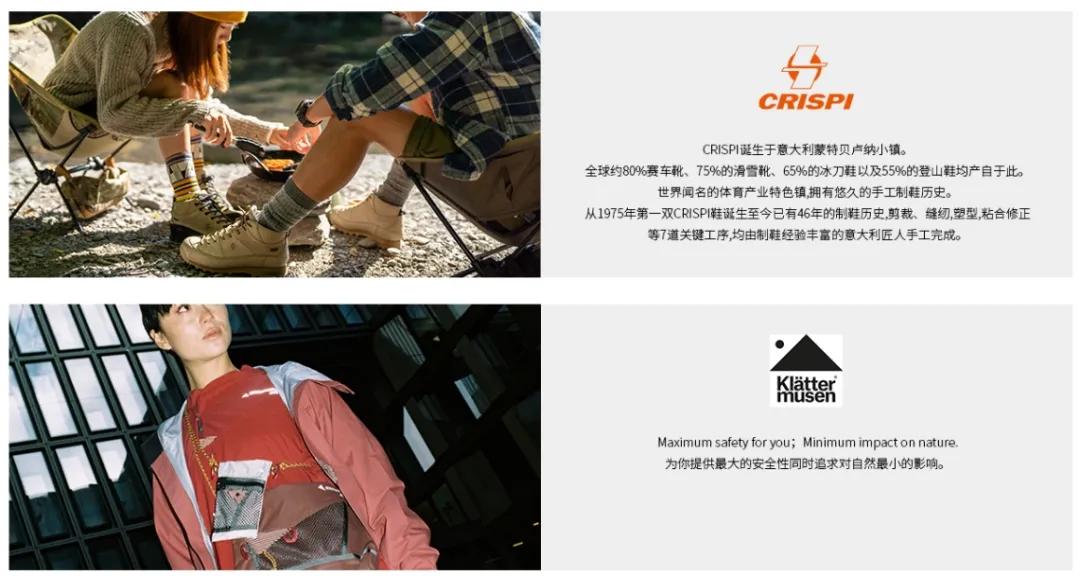 - 瑞典规模最大户外装备品牌之一Haglöfs(火柴棍)被李宁家族控制的莱恩资本、非凡领域合资公司收购,今年年初正式进驻天猫、线下门店也在筹备中;阔别七年之后,主营滑雪、登山、极地远征装备的挪威“国宝级”品牌Norrøna(老人头)和零售代理商滔搏达成合作,即将二度入华;来自冰岛的百年品牌66°North高层表示正在和中国零售商谈判,已制定进入中国市场的计划;Fjällräven(北极狐)、Helly Hansen(海丽汉森)等入华多年的品牌也在不断加大投入……