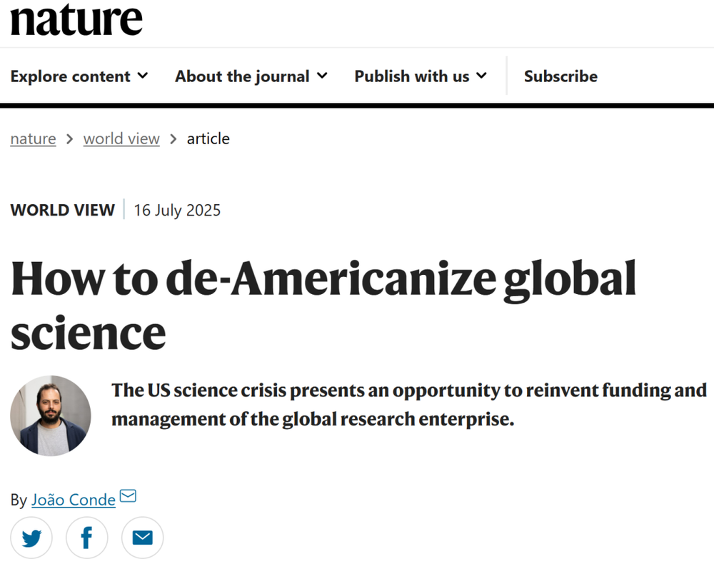 就连nature官网上都开始打出标题“如何使全球科学去美国化”