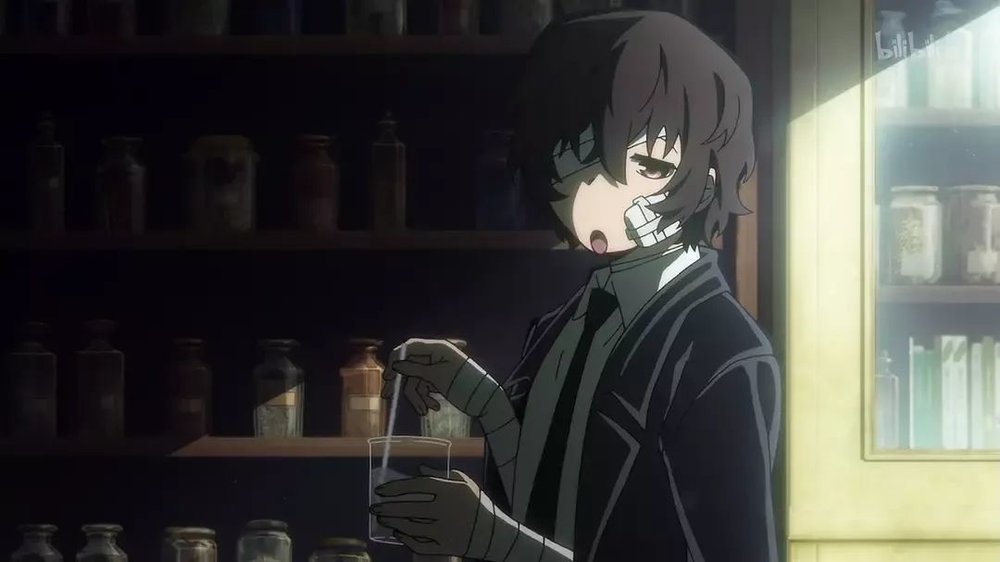 首先,矛头很容易会对准《文豪野犬》。因为这番剧,把各种作家变成了和真人基本无关的角色,它是个纯粹的异能战斗番,太宰治是其中“武装侦探社”的成员,能力叫“人间失格”,戏份很多。