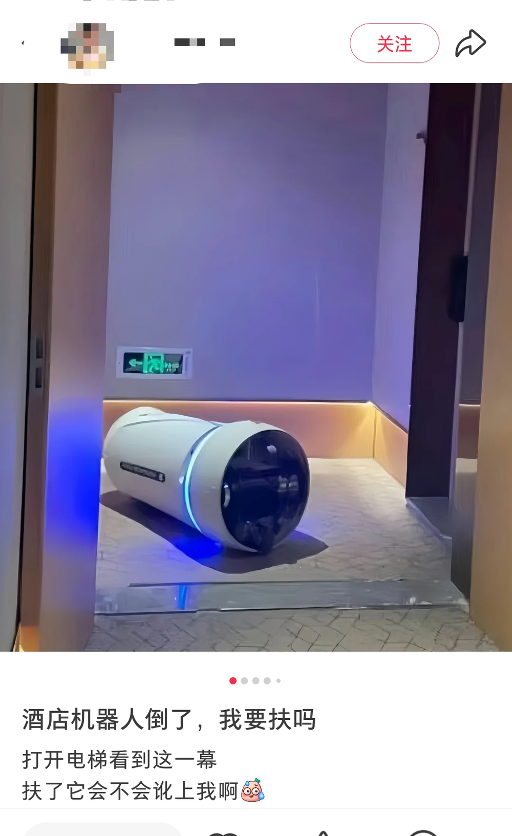 它们只能送拖鞋、外卖、毛巾,路线固定,互动时基本靠扫码或按键,且机器味十足。经常能在社交平台上看到消费者对酒店机器人的吐槽,例如:躲避障碍能力弱、声音吵……