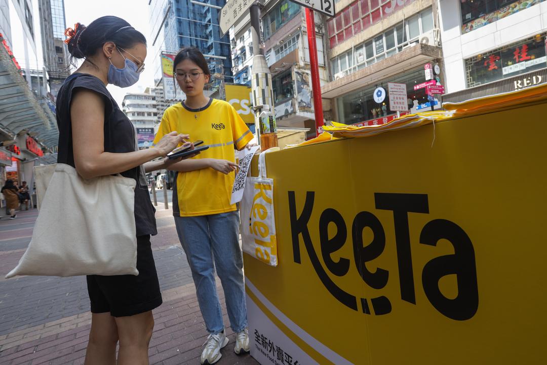 KeeTa在旺角的宣传展位。图源:视觉中国