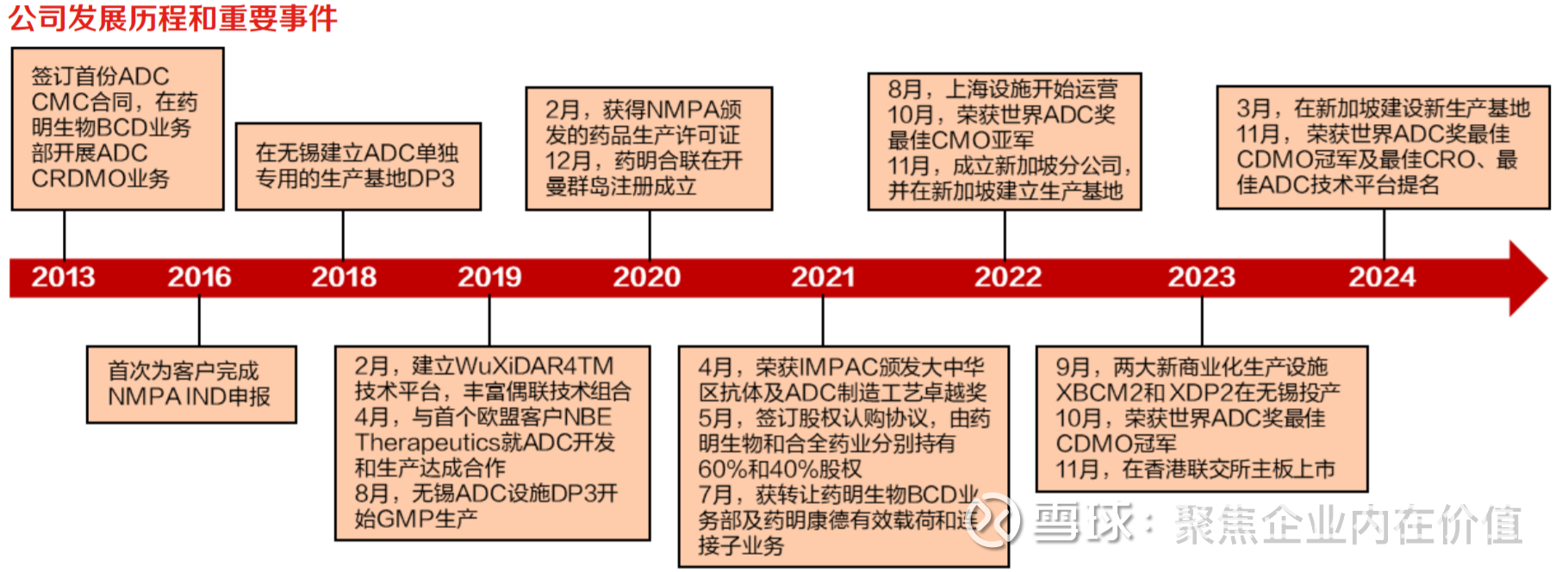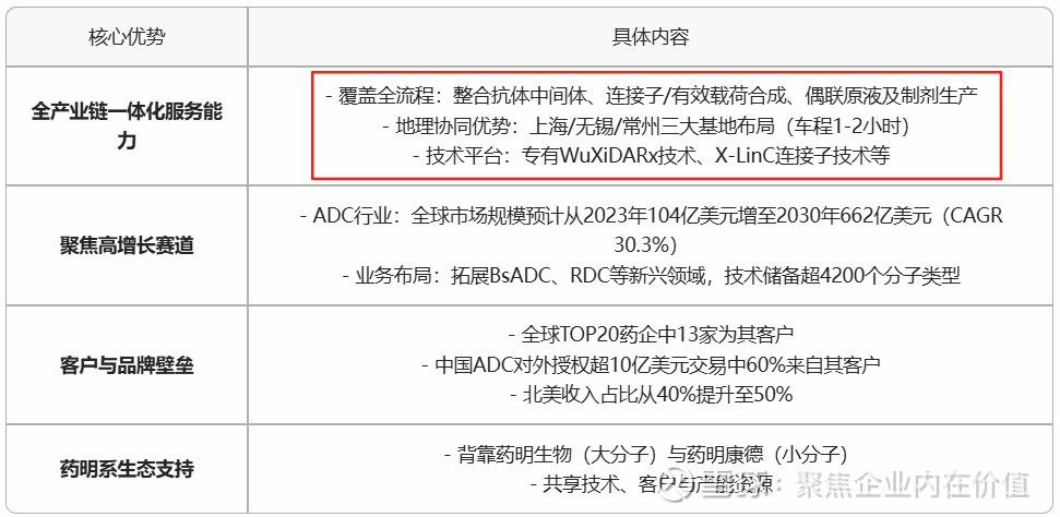 连续两年(2023-2024)获 World ADC 奖 “最佳 CDMO”,全球二十大制药公司中有 13 家与其合作,占 2024 年总收益的 32.0%;中国企业 ADC 对外授权交易中,60% 为其客户,行业龙头地位凸显。