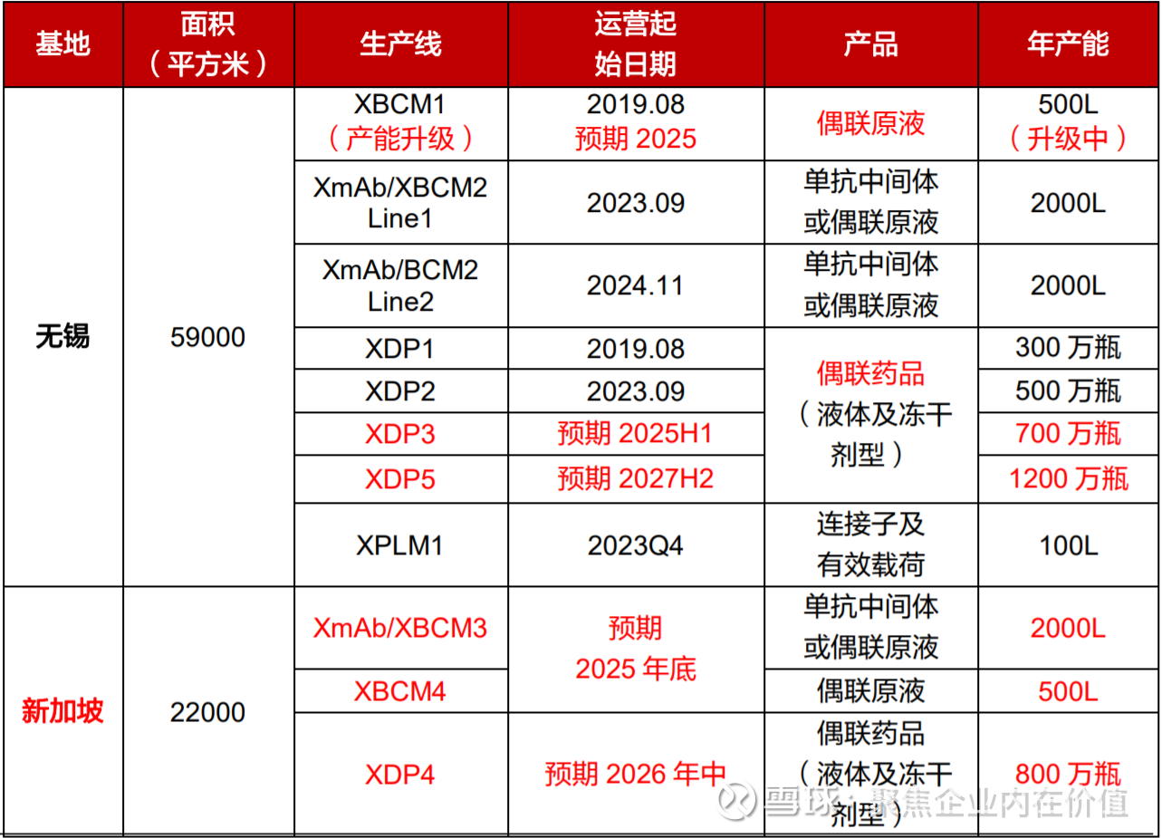 无锡基地扩建及新加坡新基地建设按计划推进,新加坡基地预计 2025 年底启动运营,将新增生物偶联药抗体中间体、原液及制剂生产线;无锡基地 XDP3 设施预计 2025 年二季度投产,XDP5 设施 2027 年投产,持续提升全球服务能力。