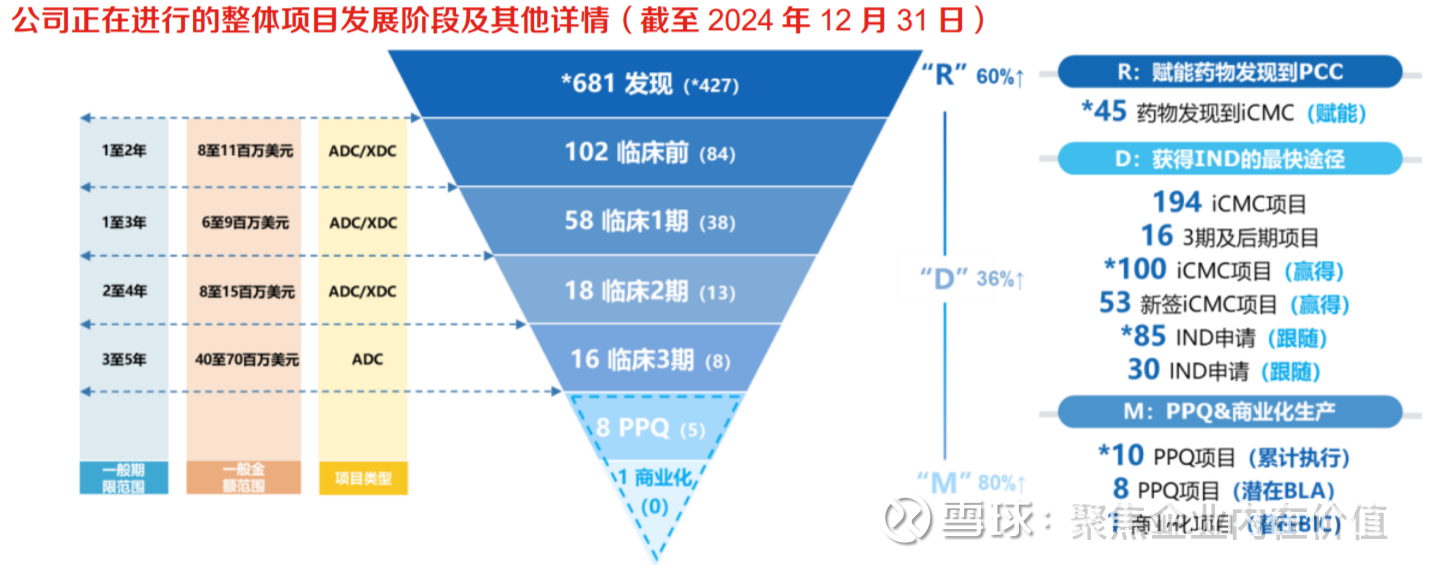 截至 2024 年底,累计服务全球 499 名客户,较 2023 年的 345 名大幅增加;综合项目总数从 143 个增至 194 个,其中 II 期及后期项目从 21 个增至 34 个,包括 8 个 PPQ(工艺验证)项目和 1 个商业化阶段项目,业务向高价值环节推进。