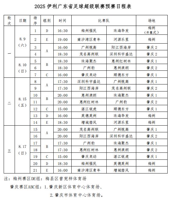 ★肇庆赛区(肇庆体育中心体育场)赛程安排↓↓↓