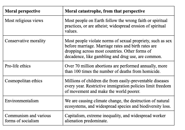 In fact, we think most moral perspectives should regard the world today as involving a catastrophic loss of value compared to what we could have created.
