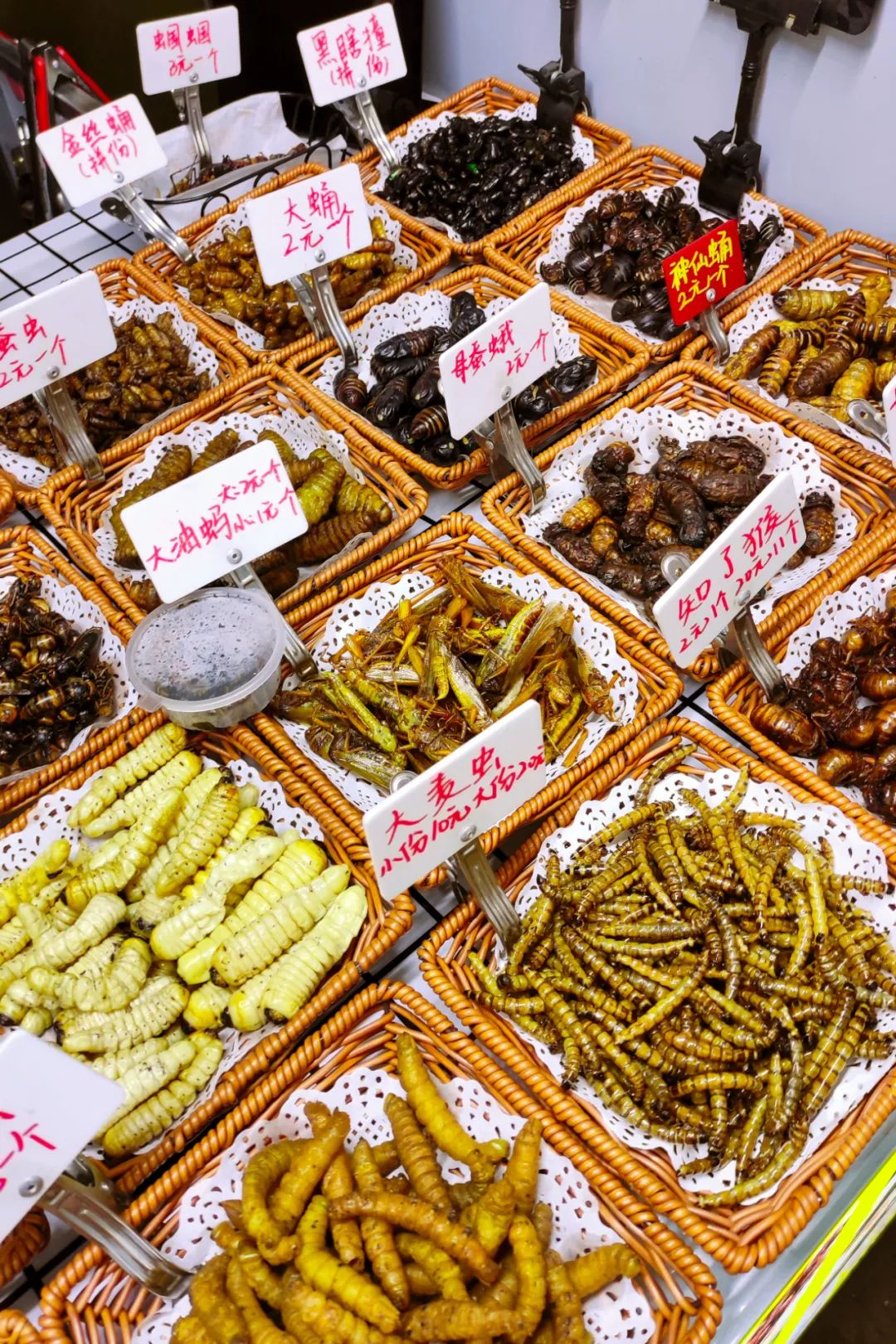 蝎子和山水牛则是“进阶玩家”的专属:山水牛的外形较其他虫子更大,但肉质紧韧耐嚼;蝎子则先用高度白酒“醉晕”,再穿成串炭烤,胆小者不敢吃,胆子稍大些的食客只敢吃蝎肚,老饕则放心地整只吞下。