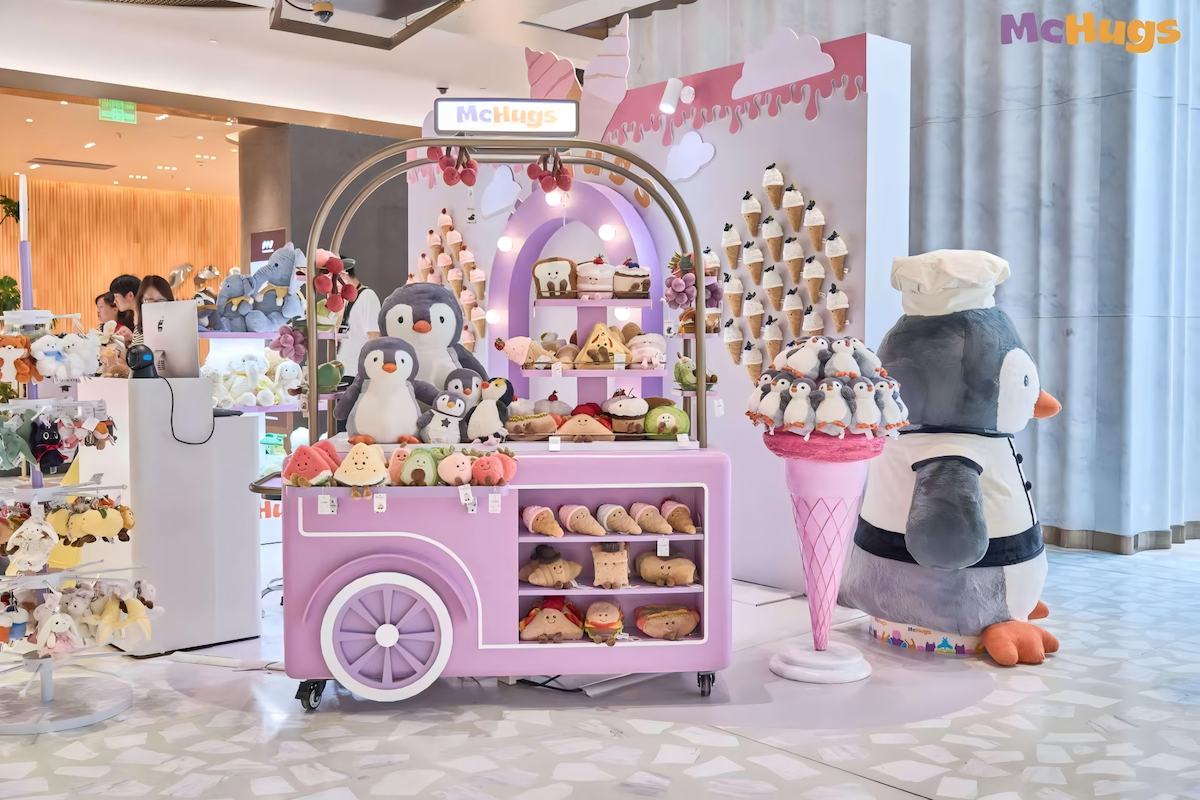8月1日,英国毛绒玩具品牌McHugs在上海的两家门店同时开业。静安店是该品牌在中国的首家大型自营店,面积约160平方米,展示了多个系列的玩偶及相关配件,并设有多个主题展区,带来沉浸式体验。与此同时,前滩太古里的限时概念空间“企鹅冰冰美食铺”也同步开幕,场内设置了多种互动装置,旨在吸引年轻消费者和家庭客群。