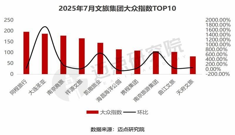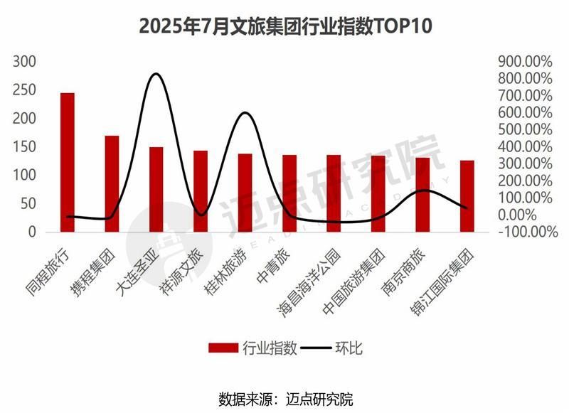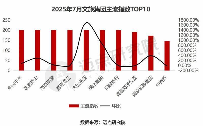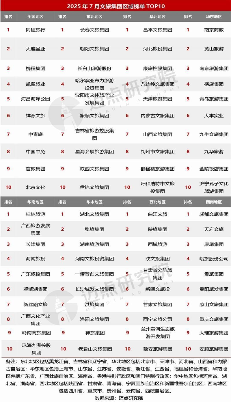 据迈点研究院数据显示:7月,同程旅行、大连圣亚、携程集团、凯撒旅业、南京商旅、海昌海洋公园、祥源文旅、中青旅、桂林旅游、中国中免位列榜单前十。其中,百强榜单中共有34家文旅集团排名环比上升,48家文旅集团排名环比下降,16家文旅集团为新上榜,2家文旅集团排名保持不变。