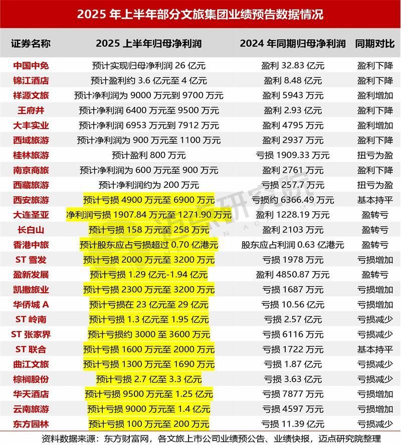 7月文旅集团动态总结:人事层面,镇江文旅集团、西域旅游新任命“董事长”要职;同程旅行拟斥资9.56亿元认购大连圣亚新股,拥有30.88%表决权,发行完成后,同程旅行将为大连圣亚的间接控股股东;以中国中免、祥源文旅等为代表的25家文旅上市公司发布上半年业绩预公告,其中9家预盈、16家预亏,呈现明显分化态势。
