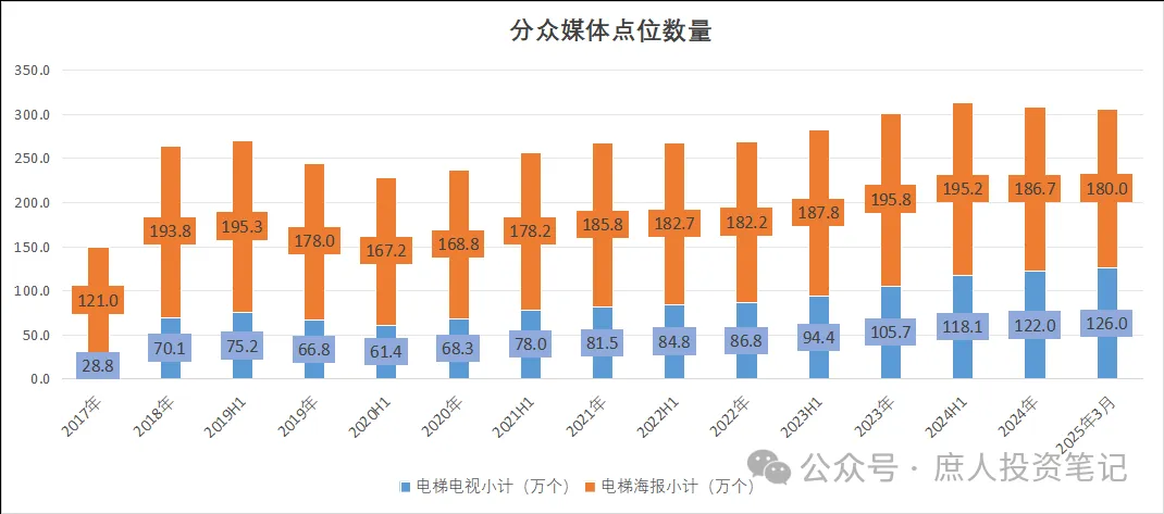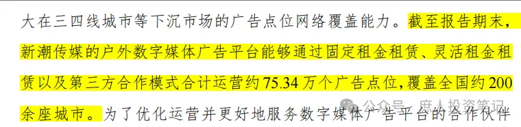 先来看《评估报告》,重点有两项。第一项是在报告的第53页,披露了新潮的点位为75.34万个,而分众25年3月的数据已经306万个了(其中电梯海报为180万个,电梯电视为126万个)。见下图: