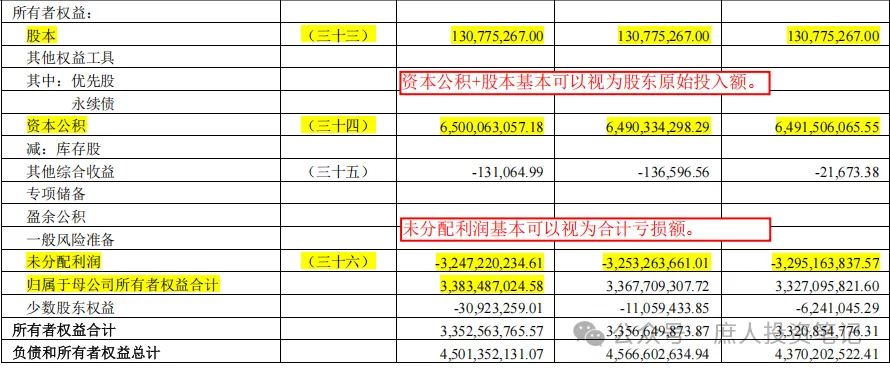 新潮自打成立以来,各路神仙股东前前后后投了76.9亿,这76.9亿都去哪儿了呢?资产负债表中所有者权益构成告诉了我们答案,见下图: