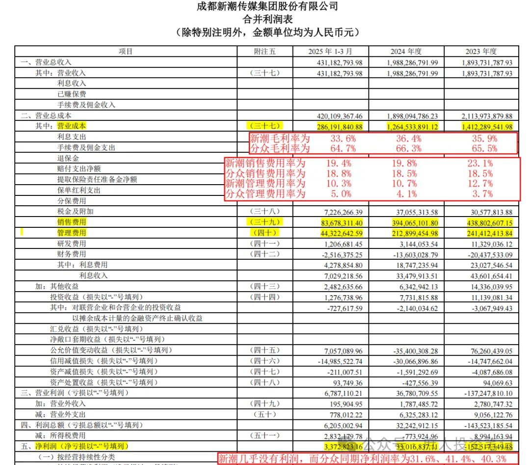 那新潮为啥一直亏钱呢?来看看下面的利润表就知道了,见下图: