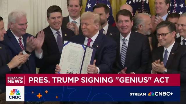 注:《Genius法案》(英语:Genius Act,Guiding and Establishing National Innovation for U.S. Stablecoins Act)又称天才法案,是第119届美国国会的一项法案。该法案要求联邦政府建立对数位货币的监管框架、明确定义稳定币的法律地位、要求稳定币发行方建立1:1储备资产(必須是美元、美债)、实施消费者保护和反洗钱机制等。