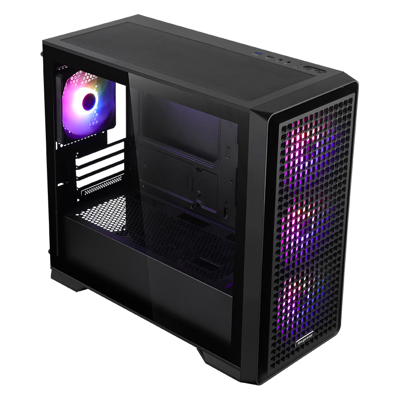 魔方 300 机箱前面板采用“全面积方形通风孔”设计,大开孔结合背后的防尘网面在兼顾阻挡灰尘的同时提升了进气表现。其左侧面板采用 4mm 无孔钢化玻璃,底部配备防碎金属包边。