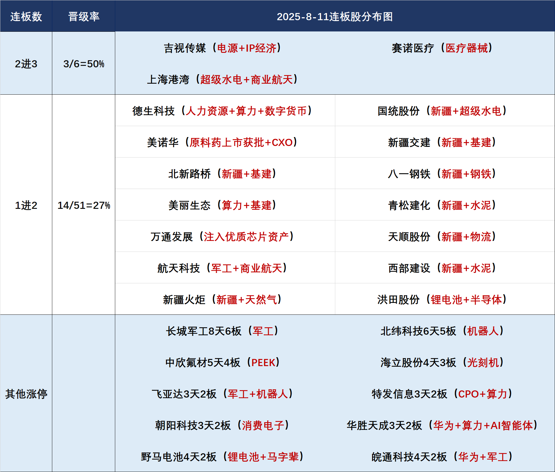 新藏铁路今天以连板股为主,西部建设、新疆交建、八一钢铁等8股二连板。该方向的高度被此前的水电基建题材压制,缺少持续发酵的机会,后面大概率是进入淘汰赛。强度仍基于此前超级水电概念高举高打带动的热度,持续性和高度应该都要低于水电基建。