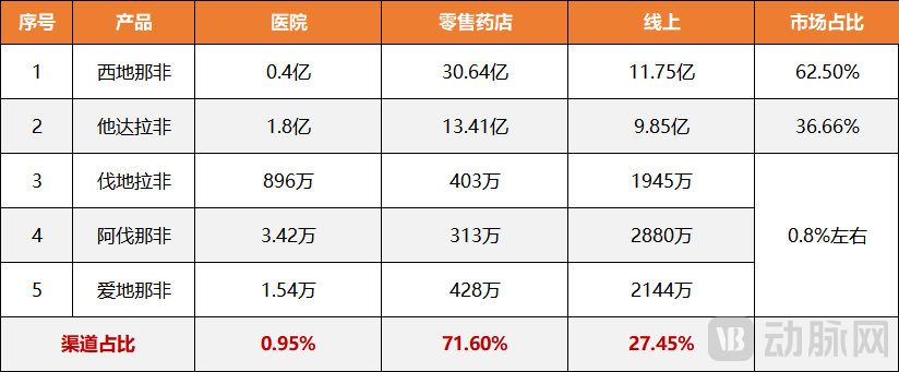 图5.2023年ED药三大渠道销售额及占比(数据来源:米内网)
