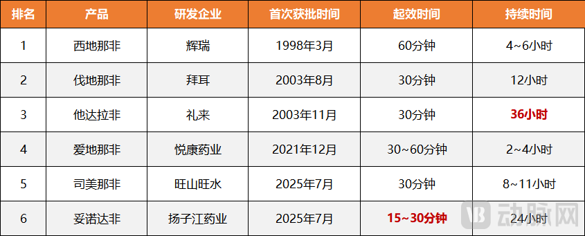 而看到巨大市场潜力的海外药企们,显然也不愿意错过这一市场机遇,拜耳的伐地那非和礼来的他达拉非相继在2003年获FDA批准,成为全球第二款和第三款ED药物。