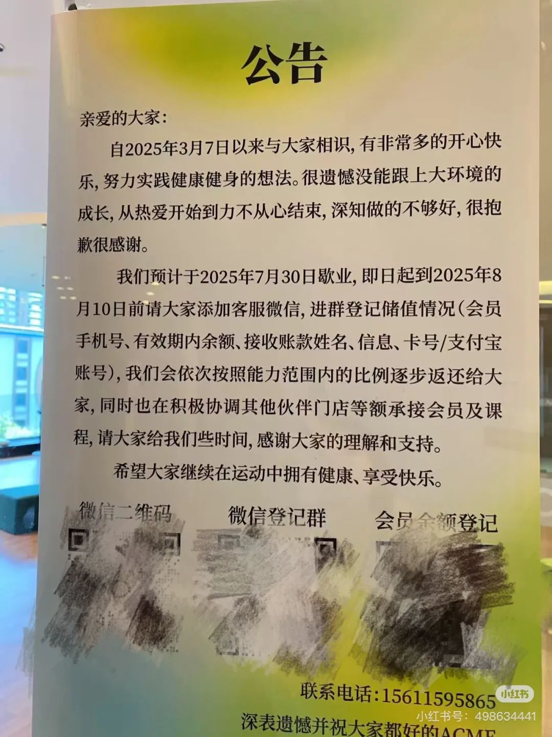 “很抱歉没能跟上大环境的成长,我们预计于2025年7月30日歇业。”就在7月底,位于北京的ACME巅峰健身(以下简称“ACME”)在其官方公告里这样写道。