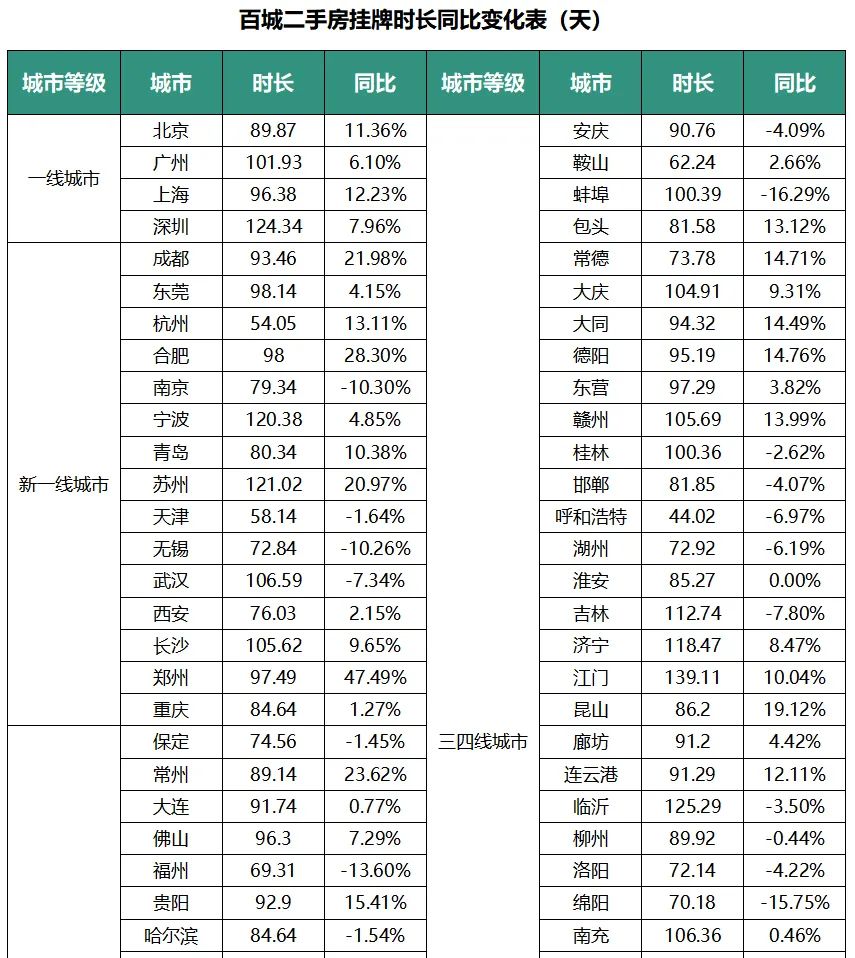 价格与流动性:挂牌均价同比下跌8.5%,二线城市跌幅最大(-10.22%),厦门(-18.66%)、合肥(-14.74%)等城市价格承压明显;同时,挂牌时长同比延长5.23%,一线城市房源成交周期突破103天,流动性持续恶化。
