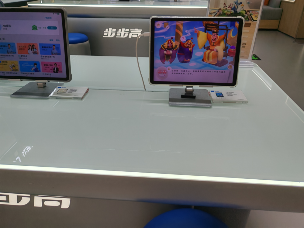 线下密集的学习机专营店,正在见证这场越来越激烈的竞争。在北京市海淀区某商场的同一层,50米内就有四家学习机专卖店,分别是学而思、小猿、步步高和科大讯飞。店内售卖的学习机,价格从2000+到9999元不等,几乎每家店员都会强调,无论价位如何,同一品牌旗下产品内置的课程都是一样的。“价格有差别,主要是硬件设备不一样,跟手机电脑一样。”