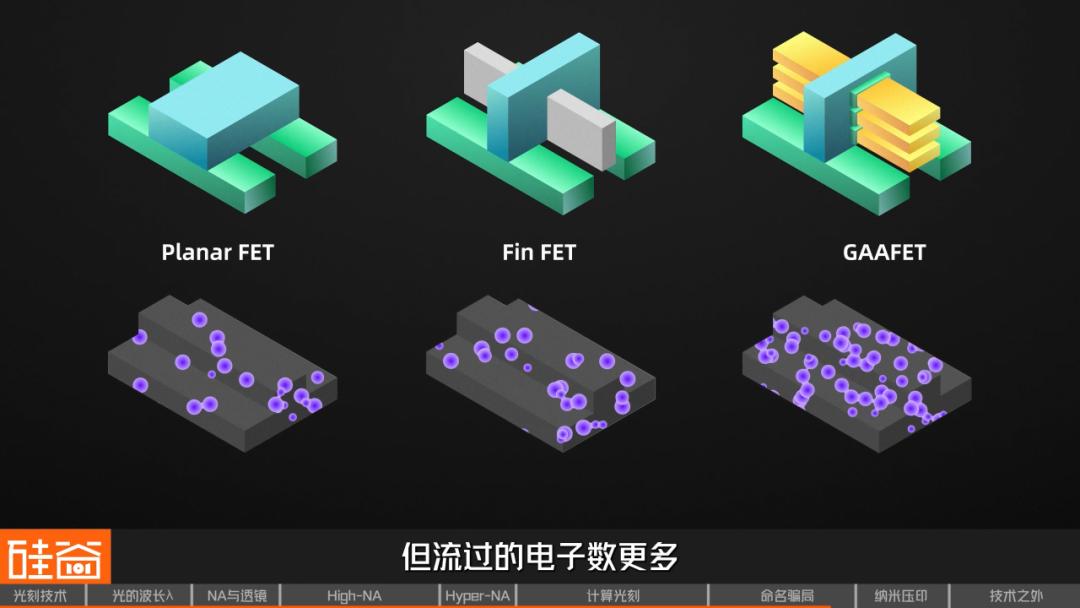 近年来厂商们更是转向了GAAFET,相当于从平面结构的平房,升级到FinFET的两层房,再升级到GAAFET的多层房,虽然这些房子的占地面积相同,但流过的电子数更多,就相当于房子住的人更多了,也变相提升了芯片性能。