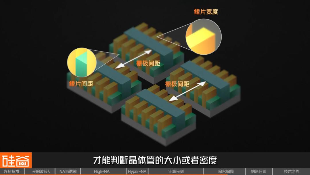 结构大变后,要判断晶体管的大小,就不能只看栅极长度了,毕竟有的结构可能一个栅极对应了很多个“鳍”,这时就得综合考虑鳍片宽度、鳍片间距、栅极间距等等参数,才能判断晶体管的大小或密度。