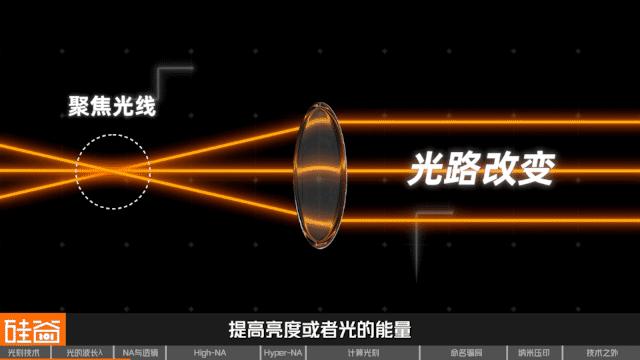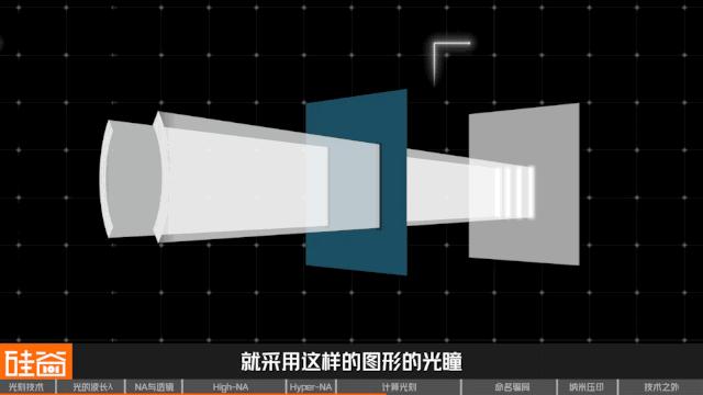 举例来说,光刻机基本的概念是把它的掩膜,进行一个缩小倍数。他们之所以没有选择一个更大的(NA)参数去做,并不是说光学系统本身做不到,而是如果当它的(NA)倍数过大的时候,(掩膜图案)它缩小得过于小,会引起其他一些系统参数的下降。如果它的放大倍数过大的时候,或者说它的NA相差过大的时候,它的景深变得过小,那么当它芯片的上下有一点点波动,放置的位置有一点波动,或者光刻胶的厚度比较厚的时候,它会造成高一点和低一点的地方得到的效果不一样,这就会造成系统其他级别的误差。