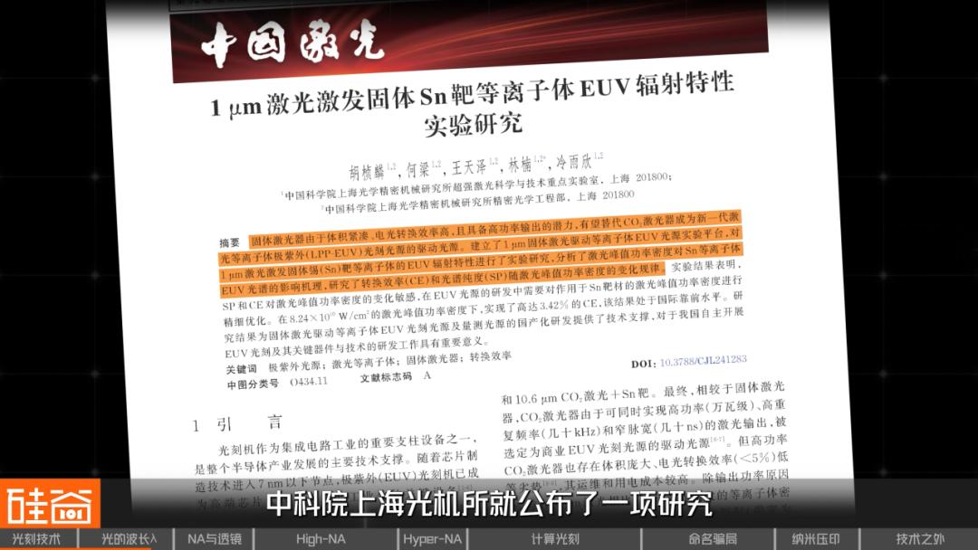 比如今年3月,中科院上海光机所就公布了一项研究,称可以在ASML采用的LPP方案中,利用固体激光器替换原有的二氧化碳激光器,同时将液态的锡滴替换为固体锡,由此可以缩小光源结构并增大输出功率。